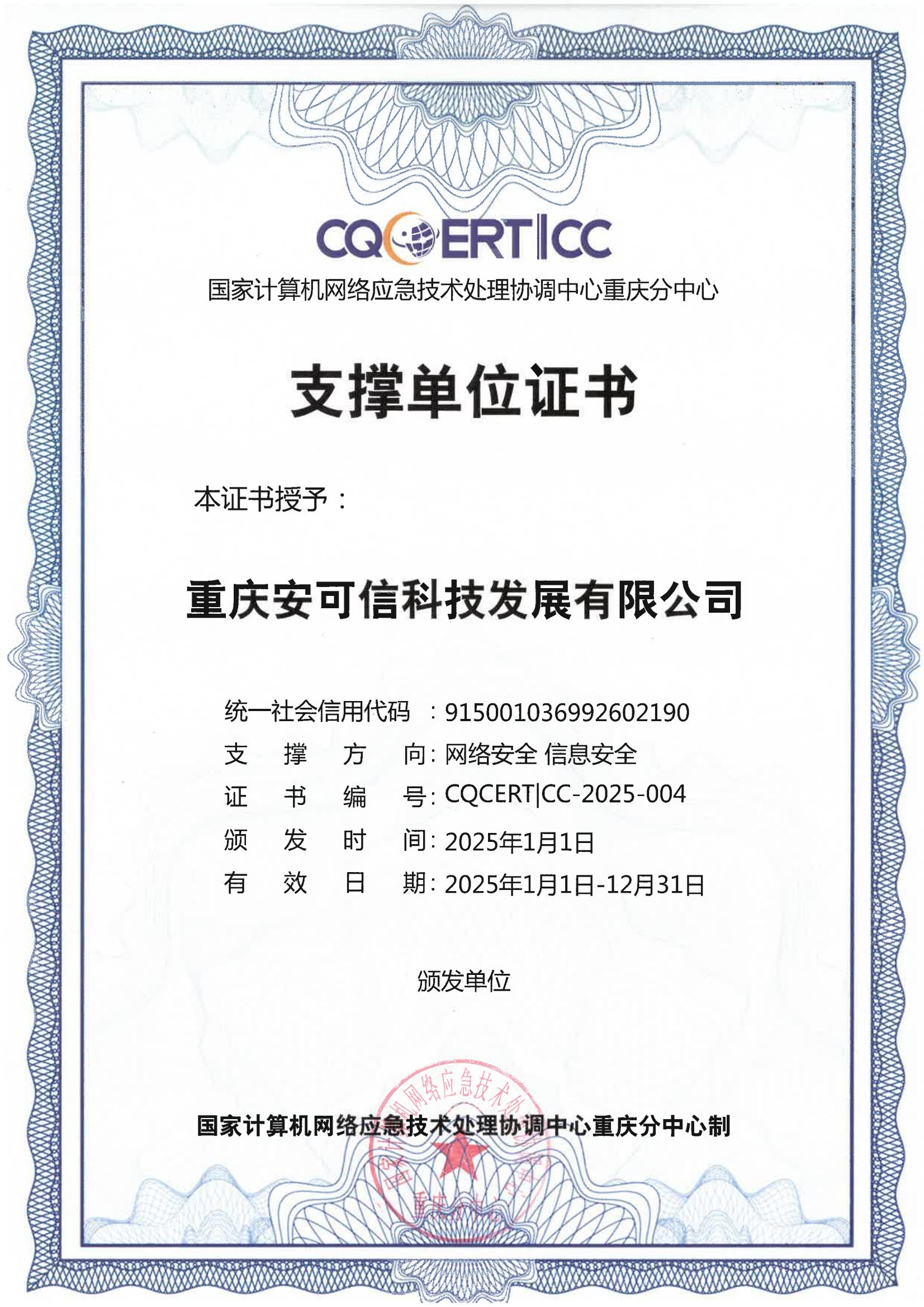 國家計算機網絡應急技術處理協(xié)調中心重慶分中心2025年支撐單位