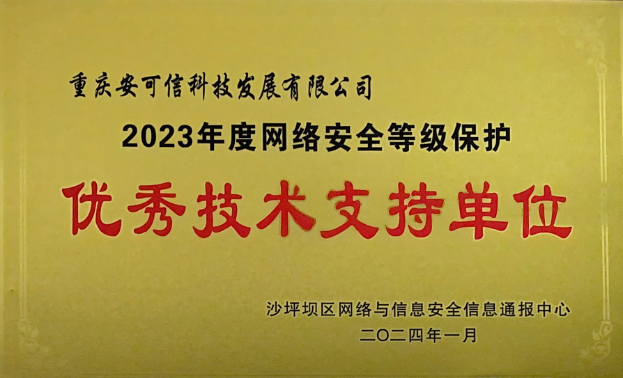 沙坪壩區(qū)網絡與信息安全信息通報中心2023年度網絡安全等級保護優(yōu)秀技術支持單位